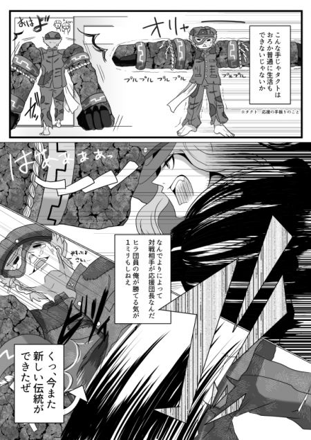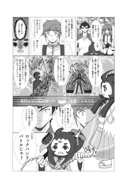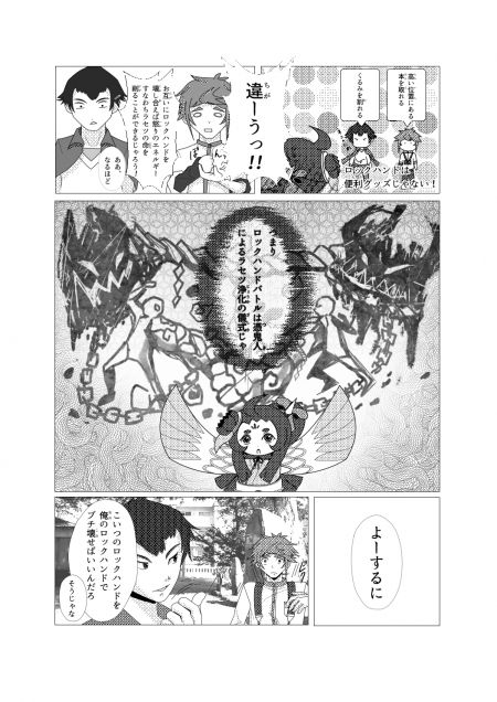 ロックハンドバトル に登場するキャラクターの番外編として書き下ろした作品。 ネームと背景、仕上げを担当しました。メイン作画はぽてと。全8ページ。