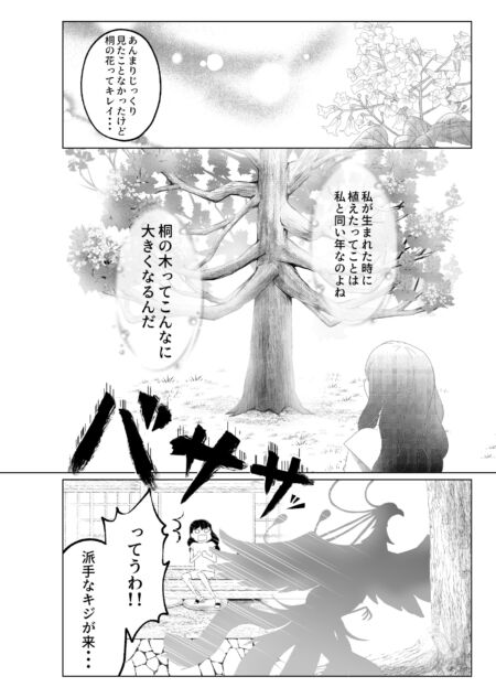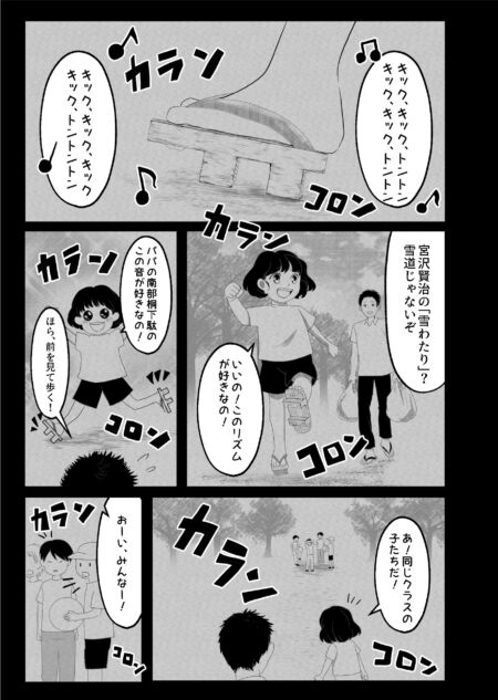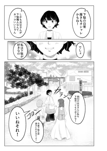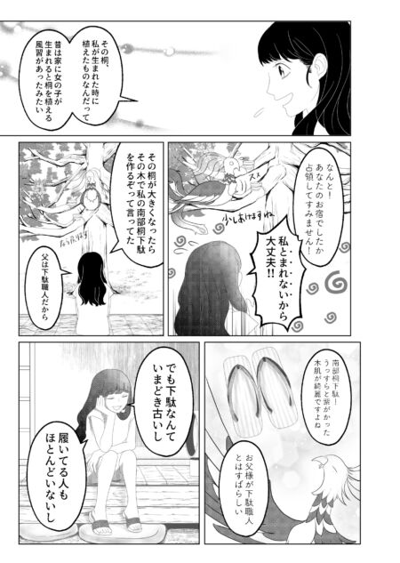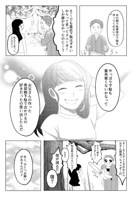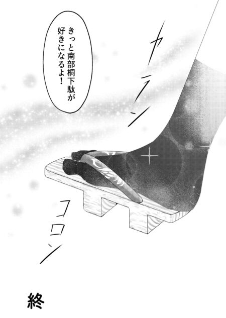岩手の県花である「桐の花」をテーマに南部桐下駄をモチーフにした漫画を作成しました。